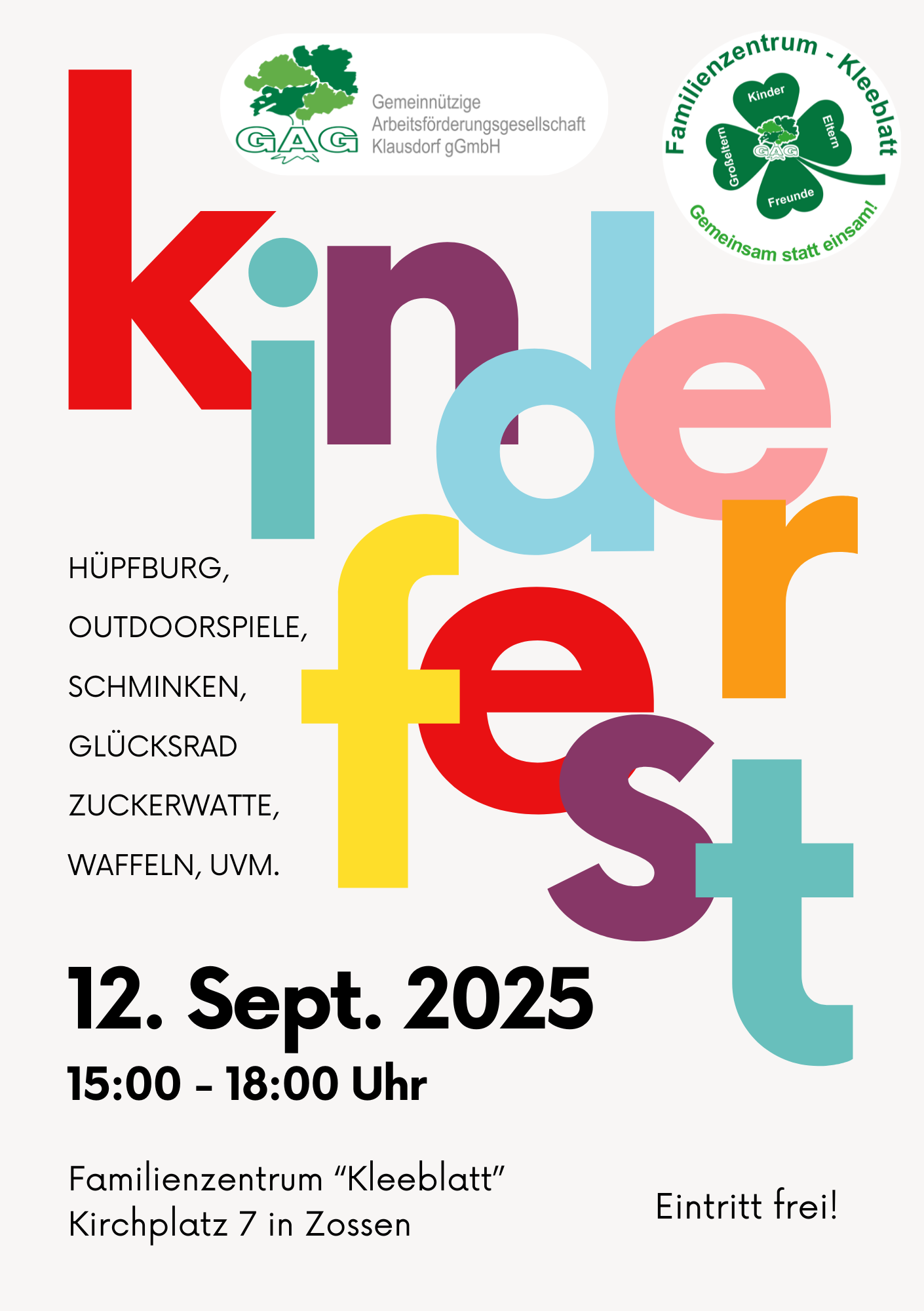 📍 Ort: Familienzentrum Kleeblatt, Kirchplatz 7, Zossen