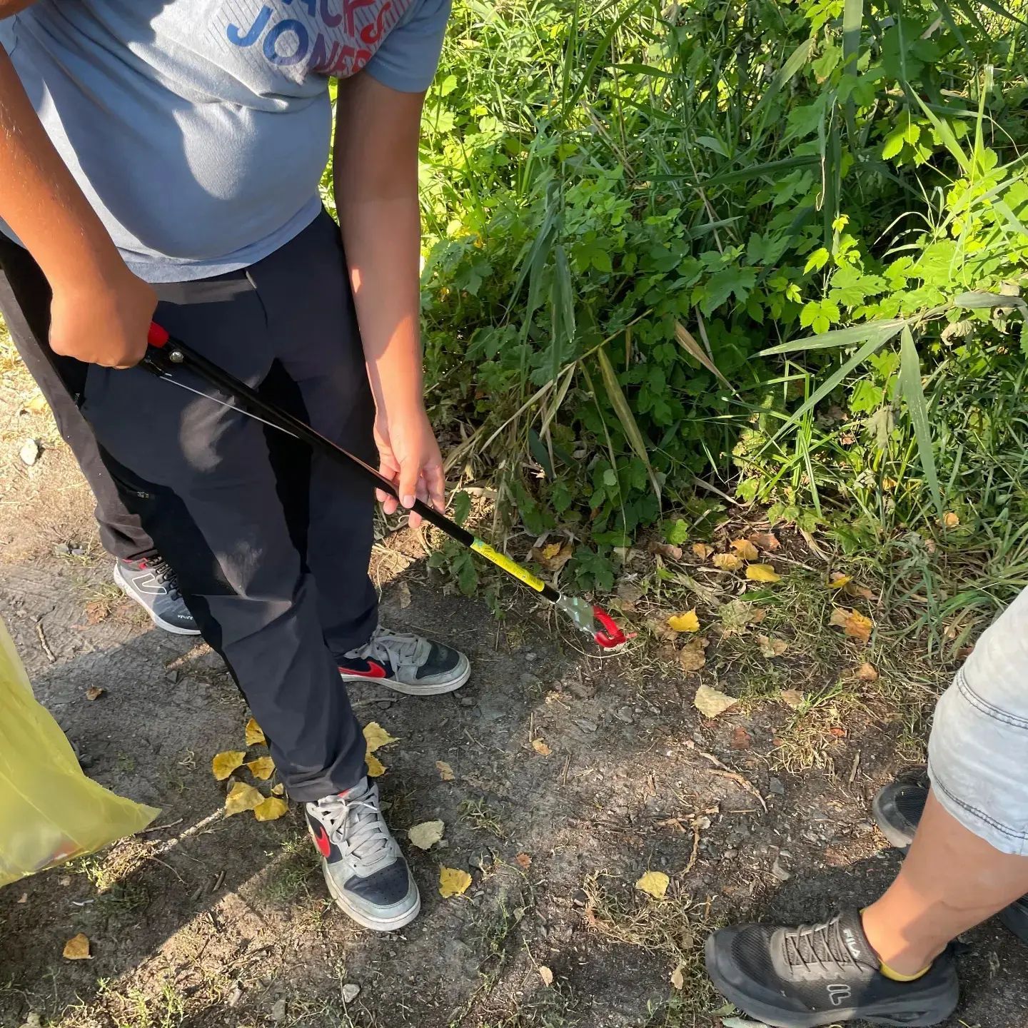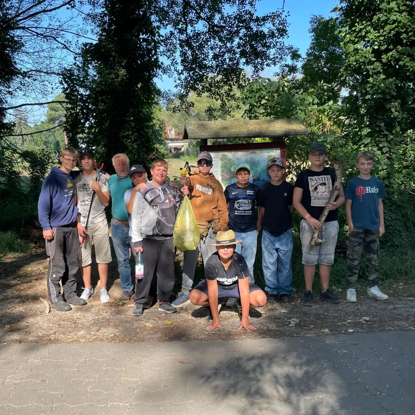 🎣✨ Das Ende naht. Der vierte Tag stand unter dem Motto: „Kleine Hände, große Taten – wir säubern das Ufer und lernen die heimische Flora und Fauna kennen!“ Wie jeden Tag habe wir ein gemeinsames Frühstück eingenommen. Frisch gestärkt gingen wir so ans Werk. Bernd hatte sich gut auf seine Mission „Umwelttag“ vorbereitet und ging mit den Petrijüngern und Jolene auf Suche nach Müll und Unrat. Lange mussten sie nicht suchen und der Müllsack füllte sich. Unterwegs nutze Bernd die kleinen Pausen, um den Kids die Flora und Fauna der Region näher zu bringen. Die Jungs waren erstaunlich gut informiert und brachten sich und ihr Wissen mit ein. Als wir so mittendrin waren, bekamen wir Besuch vom Bürgermeister Tobias Krüger aus Mellensee. Er informiert er sich vor Ort über das Angelcamp und sprach mit den Petrijüngern über die Inhalte. Leider hatte er nur wenig Zeit, denn er hätte auch gern einen Fisch gefangen. Vielleicht klappt es ja im August.