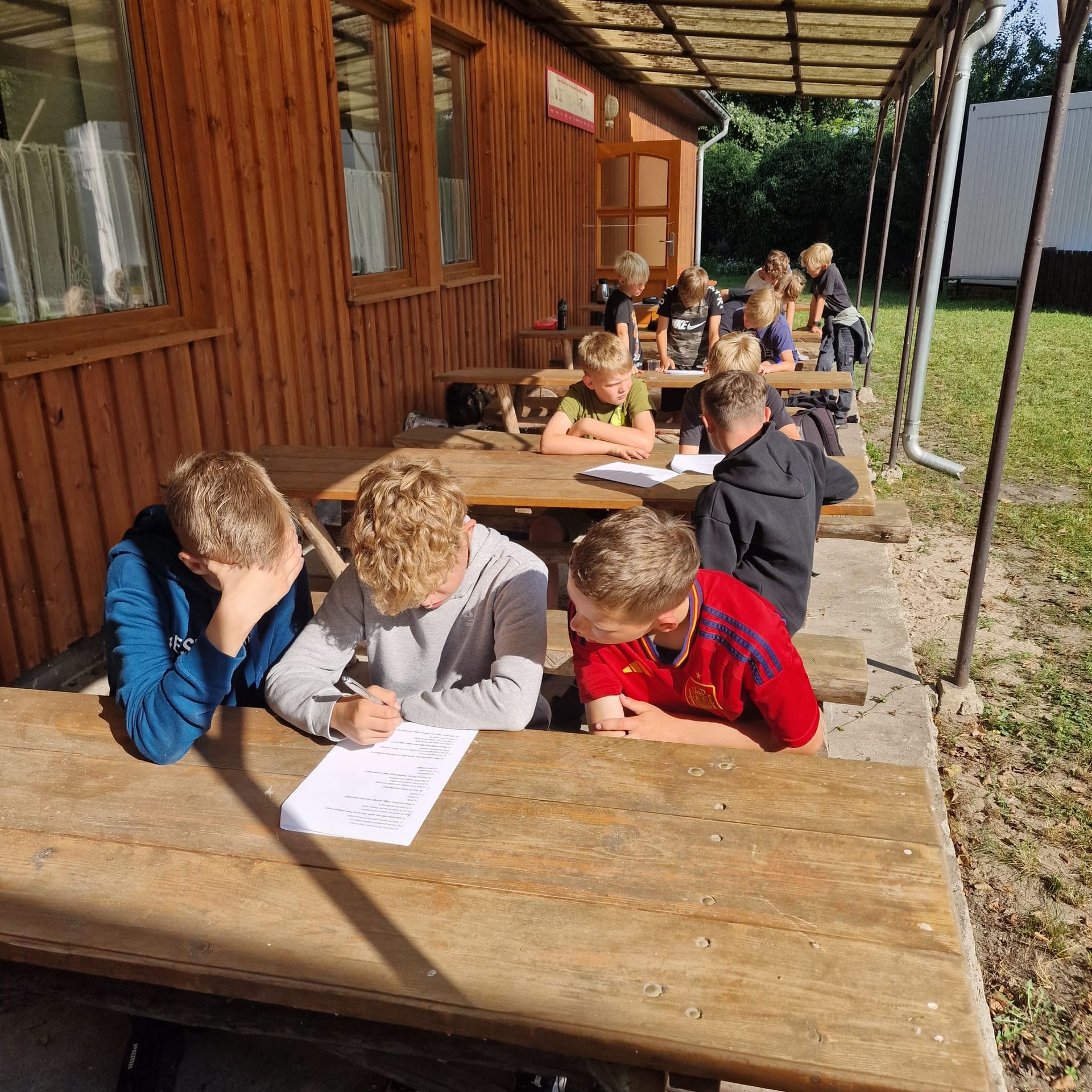 Nach einem leckeren Frühstück gab es erstmal Theorie und ein Quiz zum Thema Angeln. Unsere Jungs waren fit und haben fast jede Frage richtig beantwortet! 🎓🤓 Danach wurden Montagen neu gebaut und alte instand gesetzt.